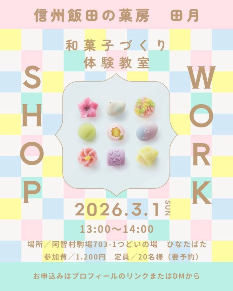 【3/1開催】春を感じる和菓子づくり体験|信州飯田「田月」による特別和菓子教室 in ひなたばた